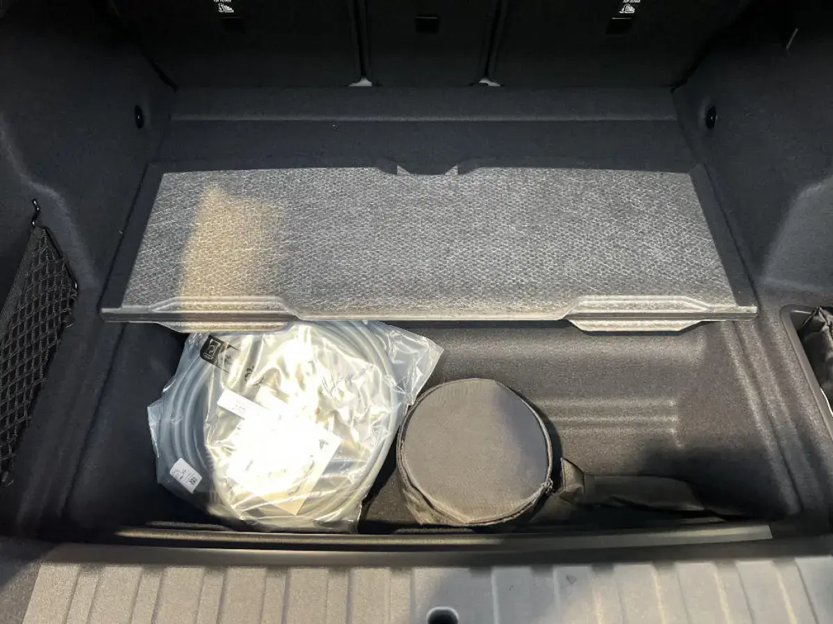 - Compartiment à bagages : 2 crochets de sac, filet sur panneau gauche, prise 12V rangement additionel (volume spécifique au modèle) sous plancher amovible