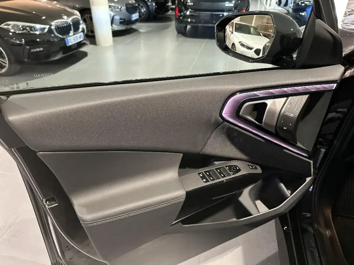 - Eclairage d'ambiance Rétroéclairage des éléments suivants (15 couleurs au choix): Poignées de portes AV, Partie inférieure du BMW Curved Display, Emplacement recharge sans fil smartphone, Contour du porte-gobelet, BMW Interaction Bar à l'aspect de verre cristallin, rétroéclairée dynamiquement.