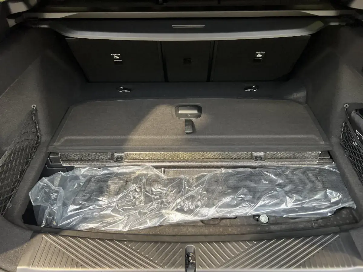 - Compartiment à bagages : 2 crochets de sac, filet sur panneau gauche, prise 12V rangement additionel (volume spécifique au modèle) sous plancher amovible