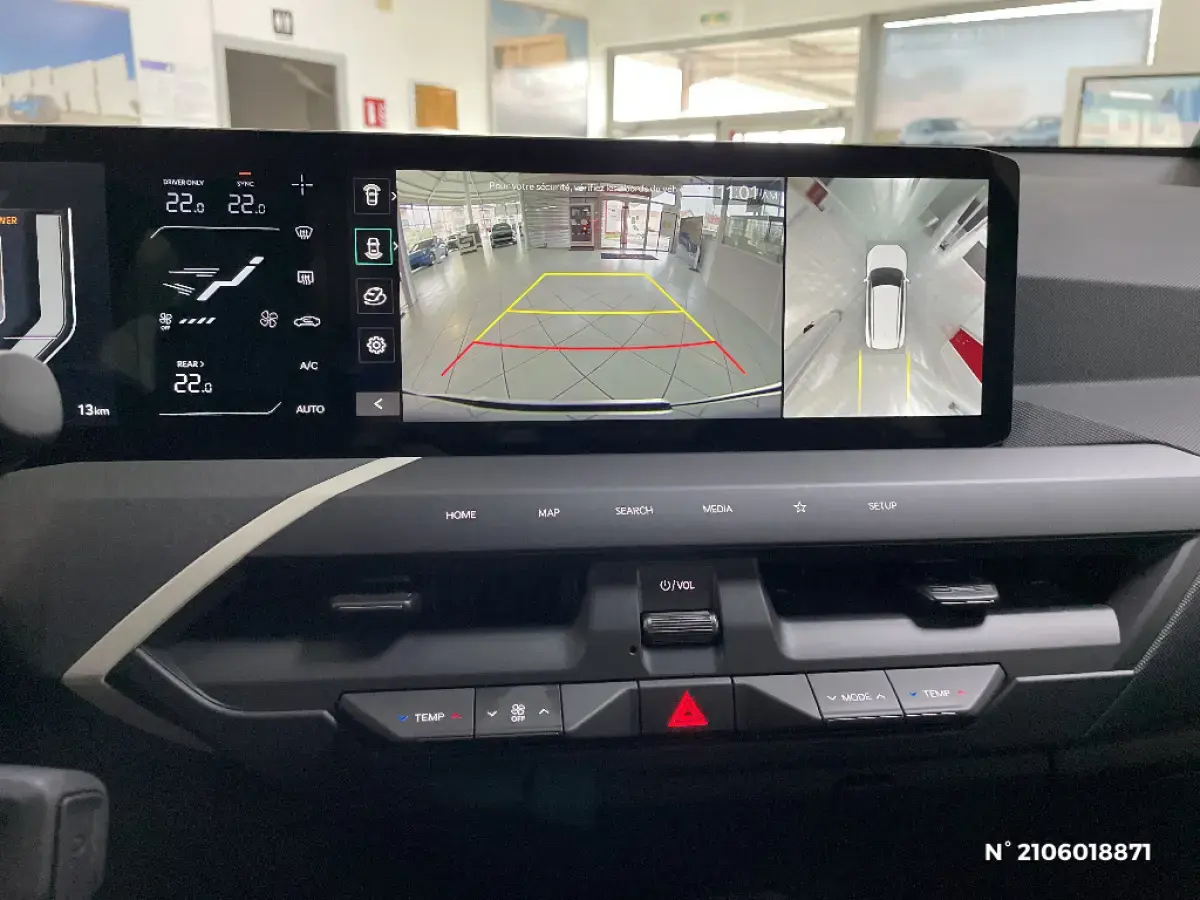 • Triple écran panoramique, intégrant un ordinateur de bord Supervision de 12,3", un écran d'affichage des réglages de confort de 5,3" et un écran tactile d'info-divertissement de 12,3" compatible Android Auto et Apple CarPlay sans fil