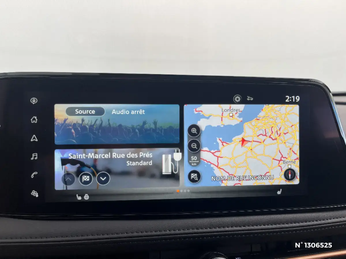 - Système de navigation NissanConnect avec écran tactile 12,3" : Live Traffic et cartes 3D, Navigation porte-à-porte, Recherche par Points d'Intérêt, Google Street View, Vue Satellite et Météo, Mise à jour des cartes et logiciels, Prix des carburants, Commandes vocales avancées avec Amazon Alexa®