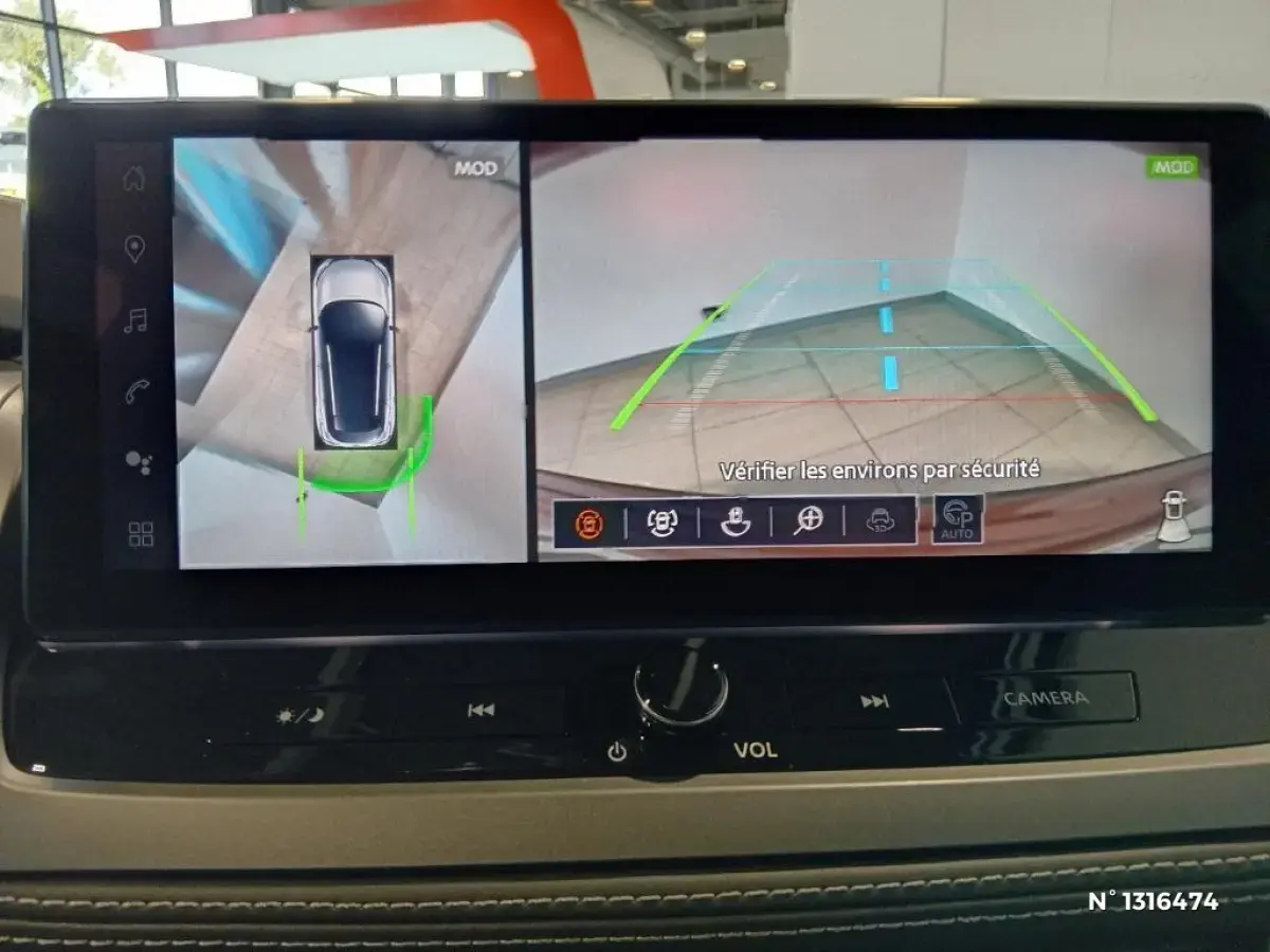 - Nissan AVM 3D - Vision Intelligente à 360° : système d'aide au stationnement qui facilite les manoeuvres de stationnement en vous offrant une vision à 360° : Caméra AR avec repères de gabarit, Caméra AV, Caméras latérales situées dans les rétroviseurs extérieurs, Radars 360°, Fonction ''capot transparent'', Mémorisation stationnement régulier et intersections