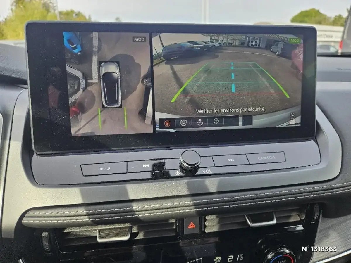 - Nissan AVM 3D - Vision Intelligente à 360° : système d'aide au stationnement qui facilite les manoeuvres de stationnement en vous offrant une vision à 360° : Caméra AR avec repères de gabarit, Caméra AV, Caméras latérales situées dans les rétroviseurs extérieurs, Radars 360°, Fonction ''capot transparent'', Mémorisation stationnement régulier et intersections