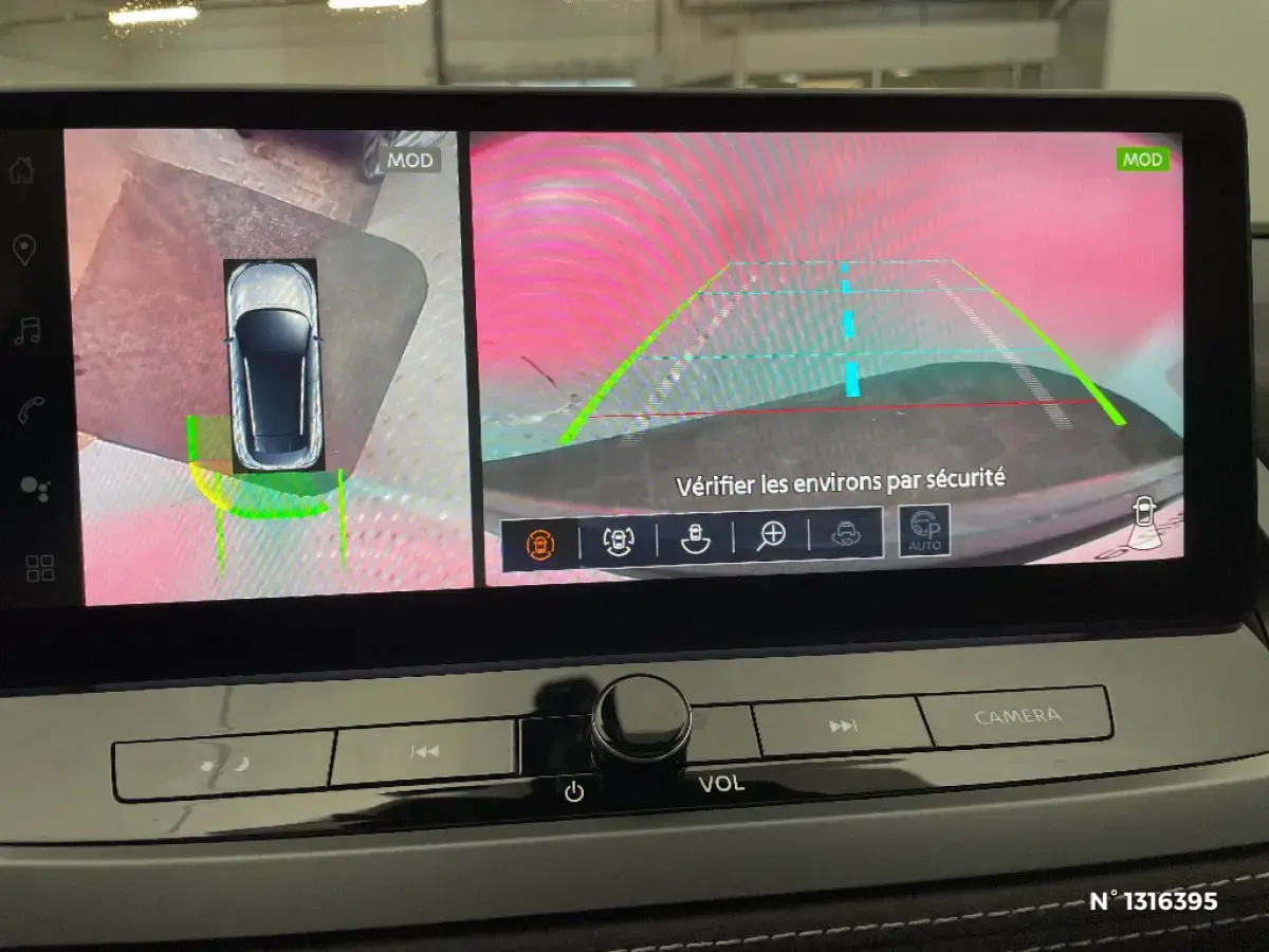 - Nissan AVM 3D - Vision Intelligente à 360° : système d'aide au stationnement qui facilite les manoeuvres de stationnement en vous offrant une vision à 360° : Caméra AR avec repères de gabarit, Caméra AV, Caméras latérales situées dans les rétroviseurs extérieurs, Radars 360°, Fonction ''capot transparent'', Mémorisation stationnement régulier et intersections