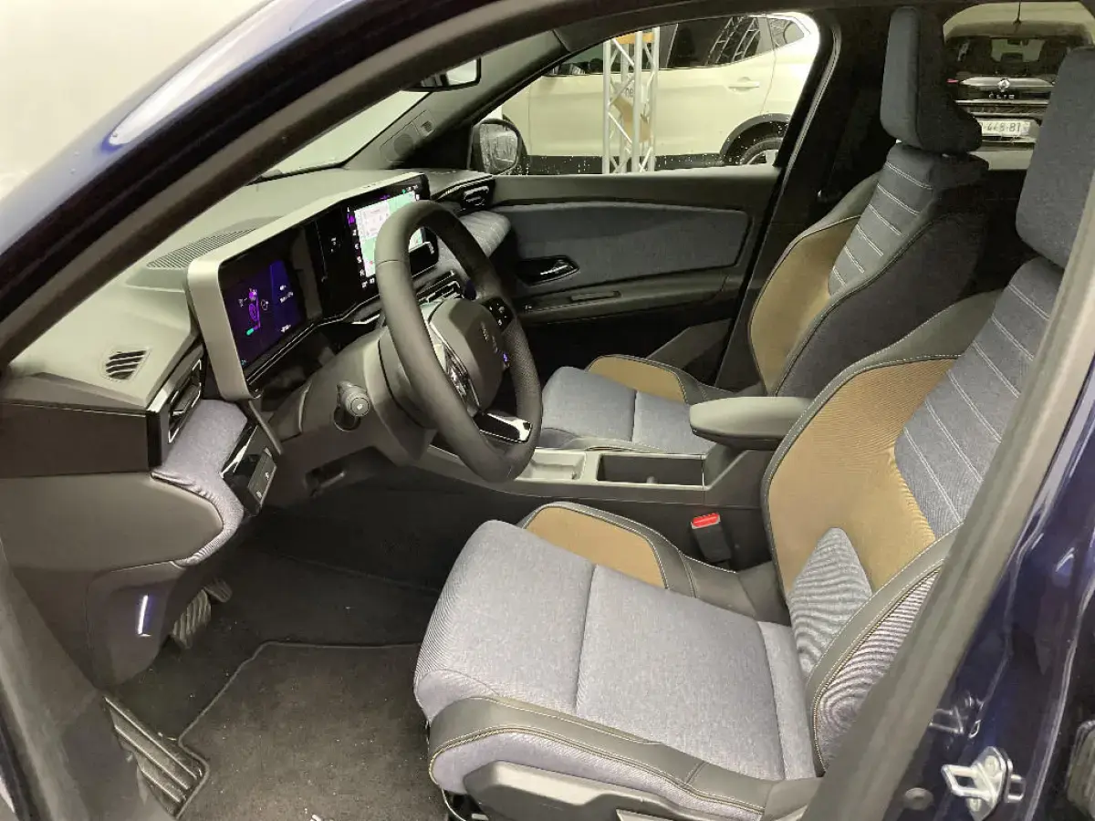 - Sellerie textile 100% recyclé "jean", double surpiqûre grise / ocre et textile refined noir