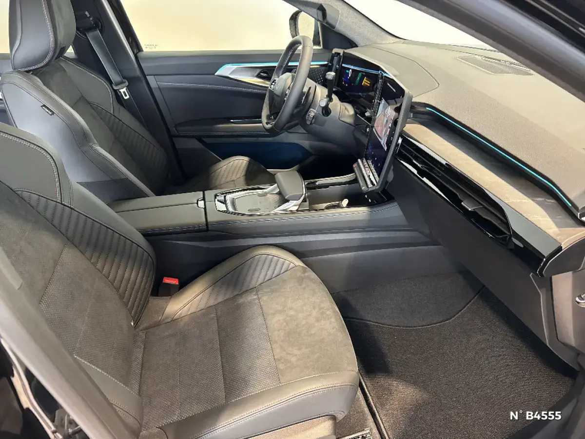 - Sellerie mixte Alcantara avec surpiqures bleues et logo Alpine lumineux