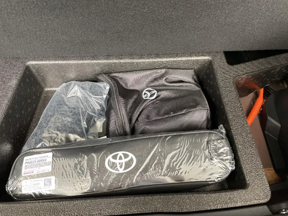 - Toyota Safety Sense : Système de sécurité précollision avec détection des véhicules, piétons (jour/nuit) et cyclistes, actif également dans les intersections (PCS), Alerte de franchissement de ligne avec aide au maintien dans la file, assistant de trajectoire et détecteur de fatigue (LTA), Régulateur de vitesse adaptatif intelligent allant jusqu'à l'arrêt (ACC), Lecture des panneaux de signalisation avec limiteur de vitesse (RSA) et Gestion automatique des feux de route (AHB), Système d'arrêt d'urgence autonome (EDSS)