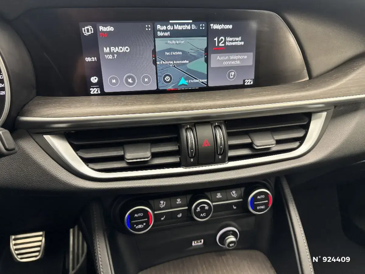 - Système Alfa Connect (Radio, MP3, Aux-in, Bluetooth) avec écran panoramique 8,8" tactile, Navigation 3D et cartographie Europe