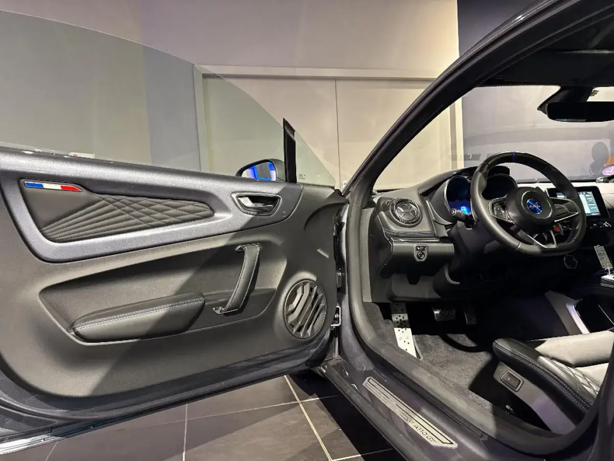 - Logo au centre du volant en Bleu Alpine