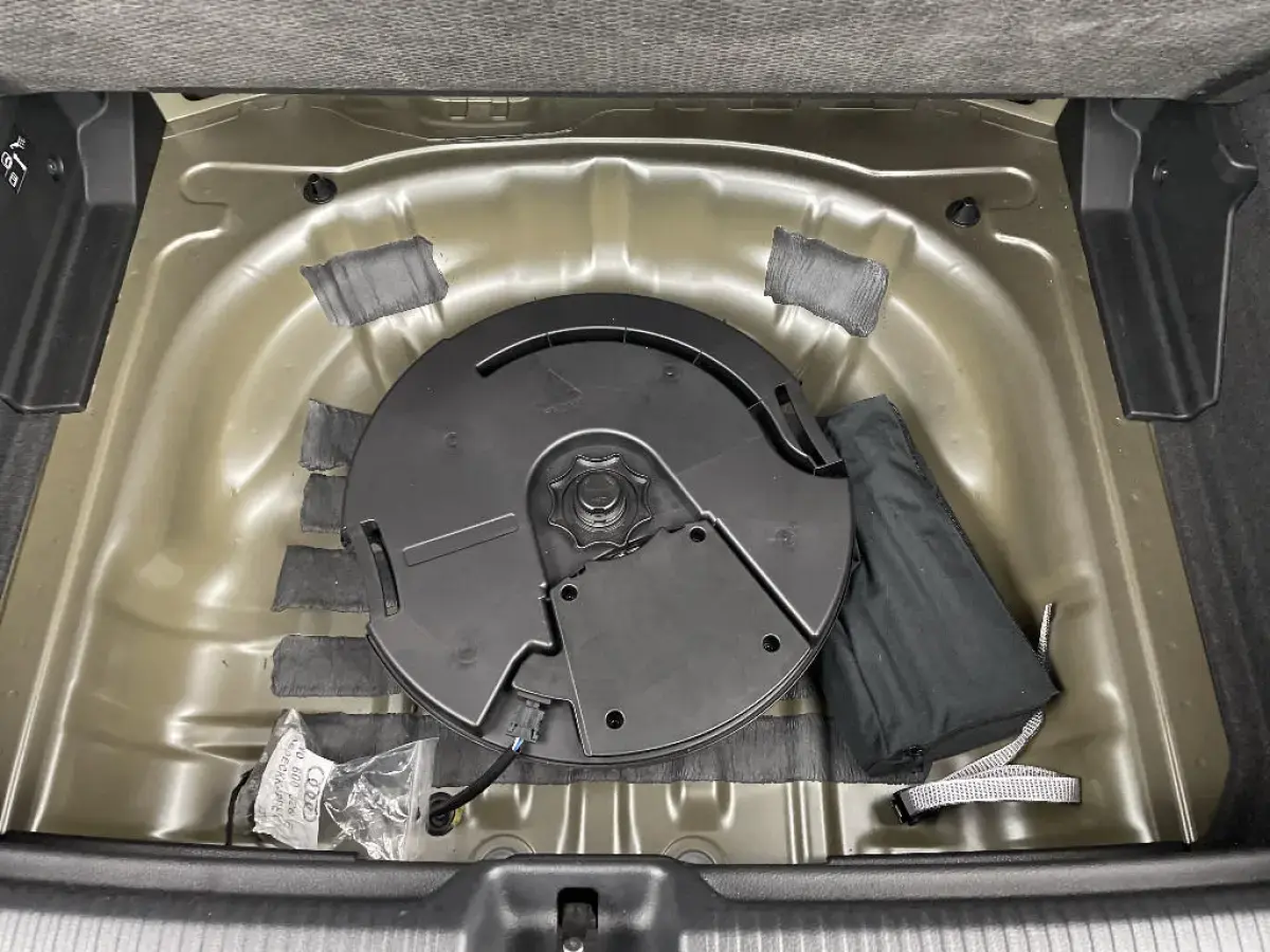 • Set de réparation pour pneus, avec compresseur 12 volts et produit de colmatage. Vitesse maximale autorisée 80 km/h
