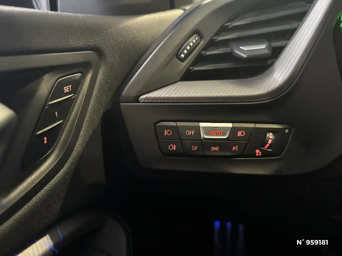 - Kit de rangement - Bac de rangement dans les portes avant (une bouteille de 1L peut y prendre place) Contrôle Dynamique de la Stabiité DSC et Contrôle Dynamique de la Traction DTC - Prise 12 V dans la console centrale "Controller" iDrive avec touches de raccourci - Double prise USB Type C dans la console centrale arrière Détecteur de pluie et allumage automatique des projecteurs - Filets au dos des sièges avant et dans le coffre à bagages,