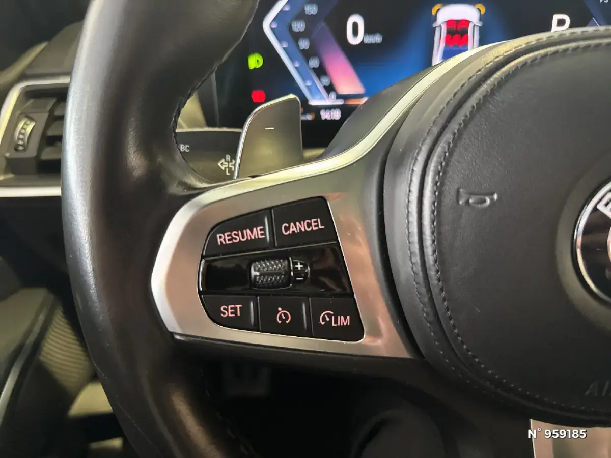 - Volant M gainé cuir Trois branches, aplati en bas et marque à 12 heures en noir. Volant en cuir noir 'Walknappa' avec surpiqûres noires, inserts chrome nacré et repose-pouce dans le volant. Logo M sur la base du volant.
