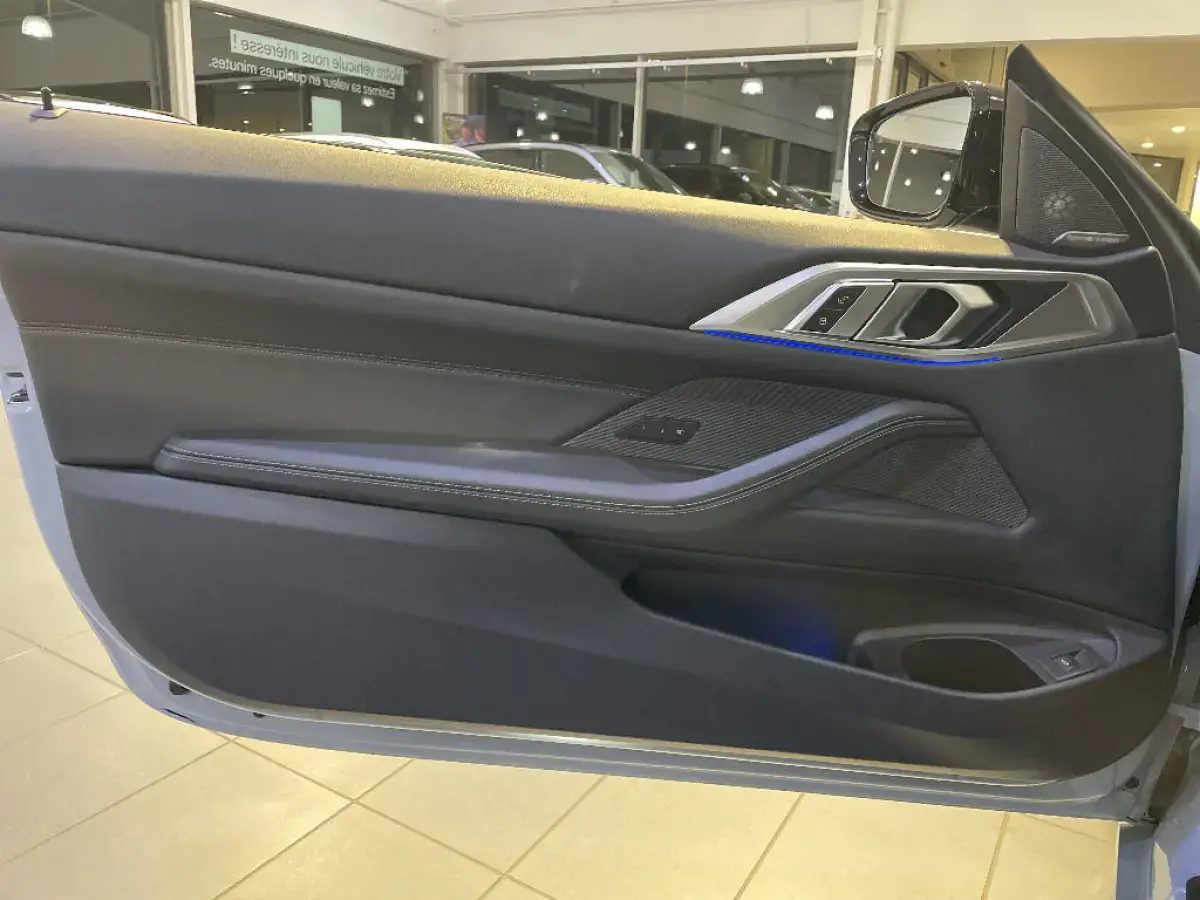 - Kit de rangement - Bac de rangement dans les portes avant (une bouteille de 1L peut y prendre place) Contrôle Dynamique de la Stabiité DSC et Contrôle Dynamique de la Traction DTC - Prise 12 V dans la console centrale "Controller" iDrive avec touches de raccourci - Double prise USB Type C dans la console centrale arrière Détecteur de pluie et allumage automatique des projecteurs - Filets au dos des sièges avant et dans le coffre à bagages,