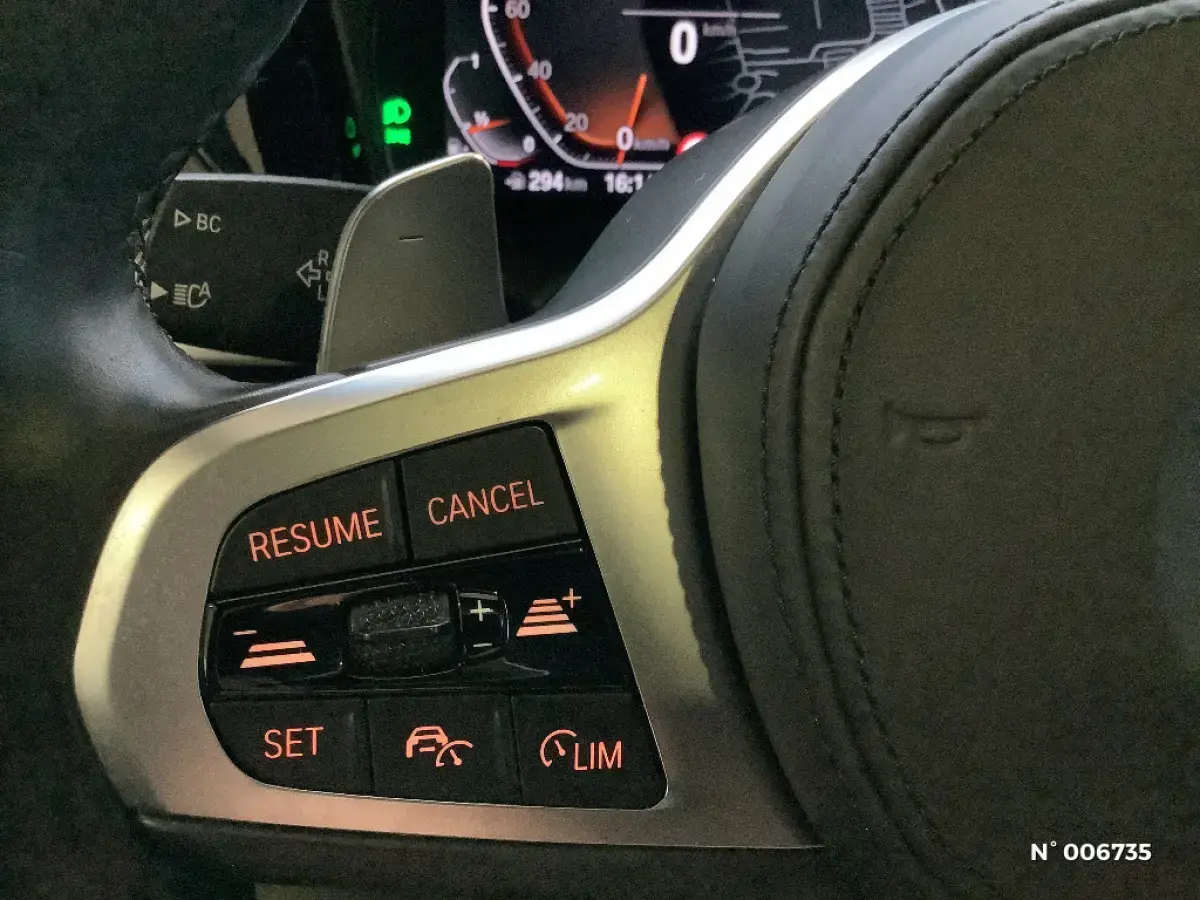 - Volant M gainé cuir Trois branches, aplati en bas et marque à 12 heures en noir. Volant en cuir noir 'Walknappa' avec surpiqûres noires, inserts chrome nacré et repose-pouce dans le volant. Logo M sur la base du volant.