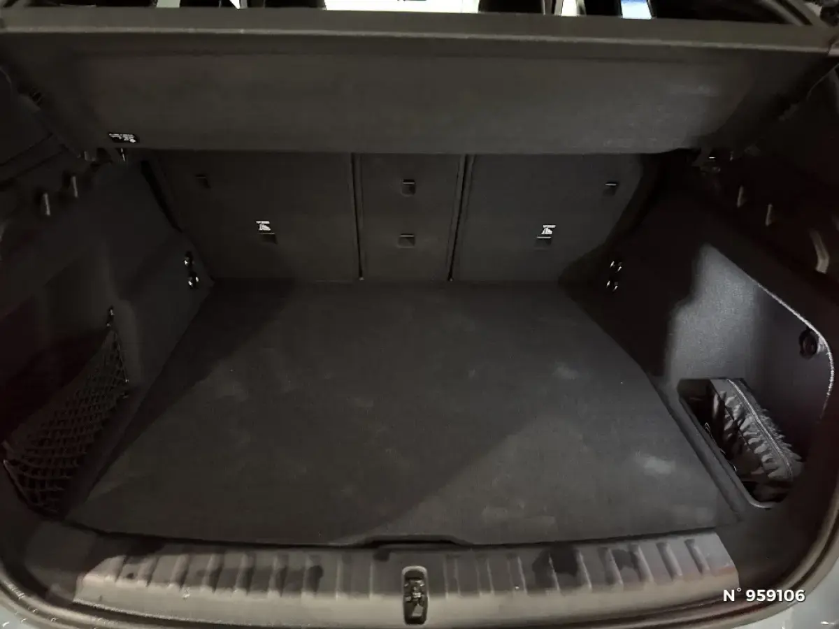 - Compartiment à bagages : 2 crochets de sac, filet sur panneau garuche, prise 12V, rangement additionel au modèle) sous plancher amovible