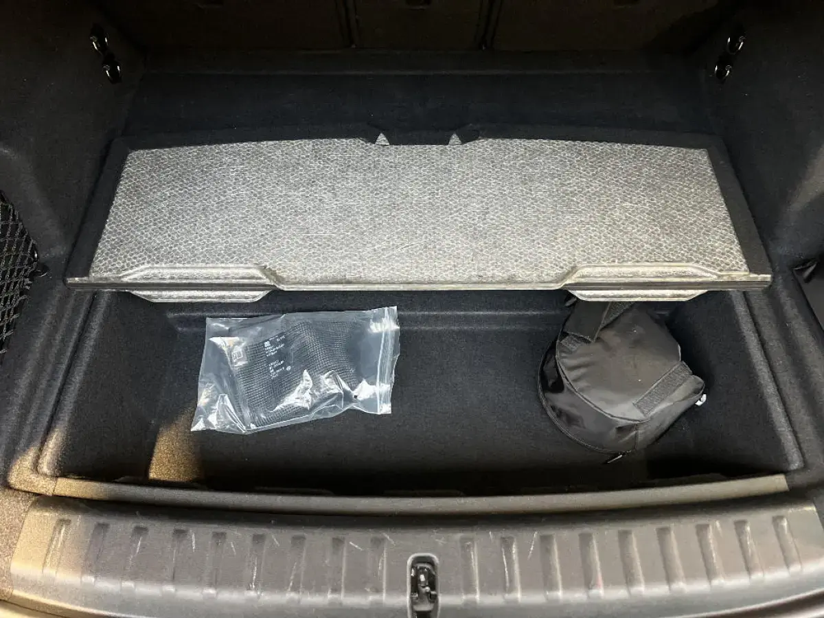 - Compartiment à bagages : 2 crochets de sac, filet sur panneau garuche, prise 12V, rangement additionel au modèle) sous plancher amovible