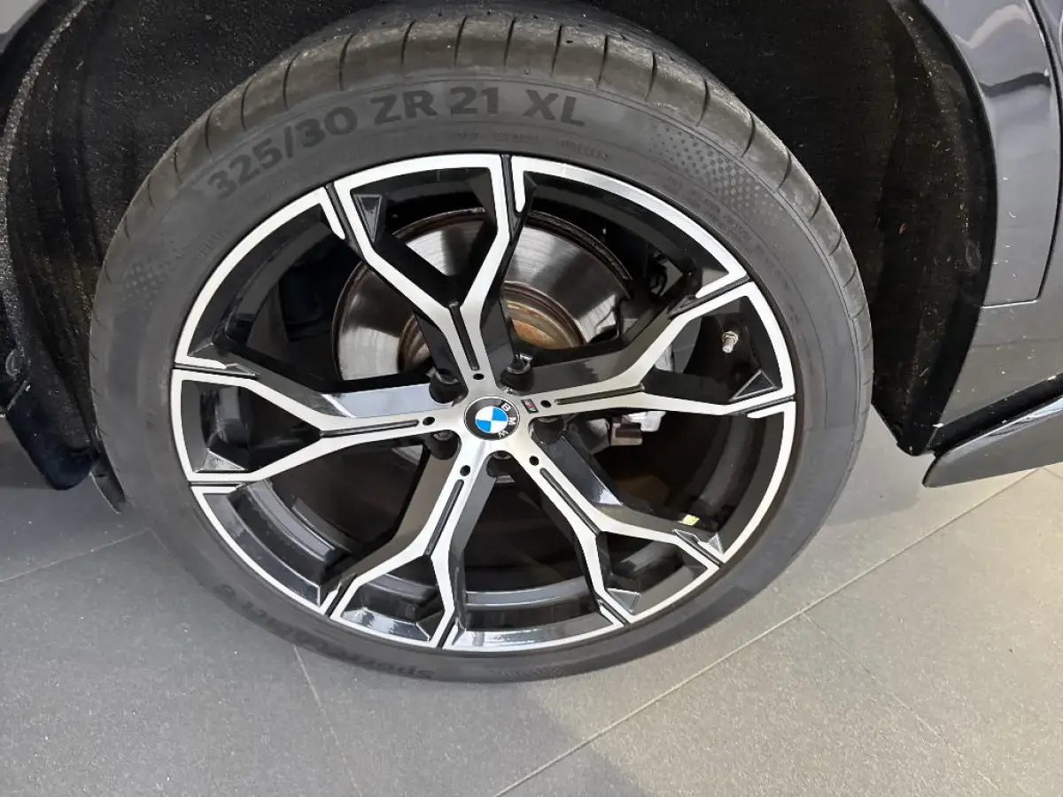 - Design spécifique "M Performance" : Grille de calandre avec encadrement chromé et barres verticales verticales noires avec tranche AV, Entrées d'air latérales de la jupe avant avec lamelles "Ferricgrau" à gauche et à droite, Coques de rétroviseurs extérieurs en "Ferricgrau", Inscription AR "X6 M50d" en chrome foncé, Sorties d'échappement trapézoïdales type 8 cylindres en chrome foncé