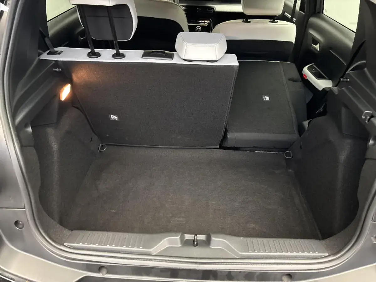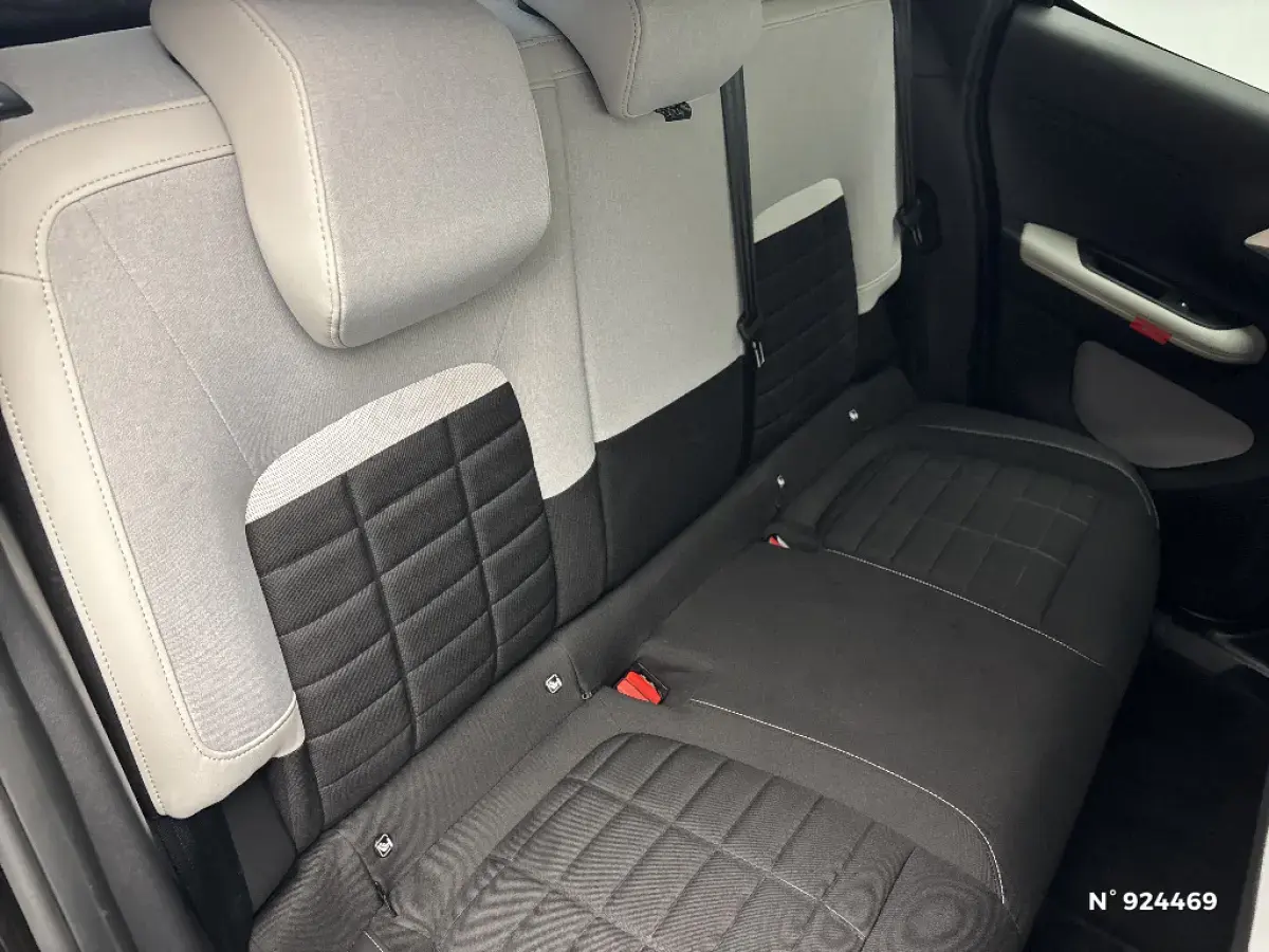 • Garnissage Tissu Noir / Tissu City / Toile enduite Claire avec Sièges Advanced Comfort. Avec les décors sur les panneaux de portes AV/AR et sur la planche de bord Gris Sidérite, les lève-vitres AR électriques (descente séquentielle), le siège conducteur réglable en hauteur, les appui-têtes AV réglables en hauteur, les accoudoirs de porte AV et AR recouverts de textile moussé avec étiquettes 'Happy Tags» (messages positifs), et des poches aumônières au dos des sièges AV