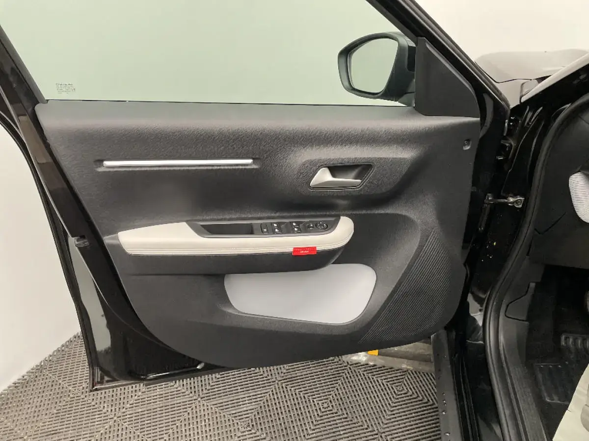 • Garnissage Tissu Noir / Tissu City / Toile enduite Claire avec Sièges Advanced Comfort. Avec les décors sur les panneaux de portes AV/AR et sur la planche de bord Gris Sidérite, les lève-vitres AR électriques (descente séquentielle), le siège conducteur réglable en hauteur, les appui-têtes AV réglables en hauteur, les accoudoirs de porte AV et AR recouverts de textile moussé avec étiquettes 'Happy Tags» (messages positifs), et des poches aumônières au dos des sièges AV