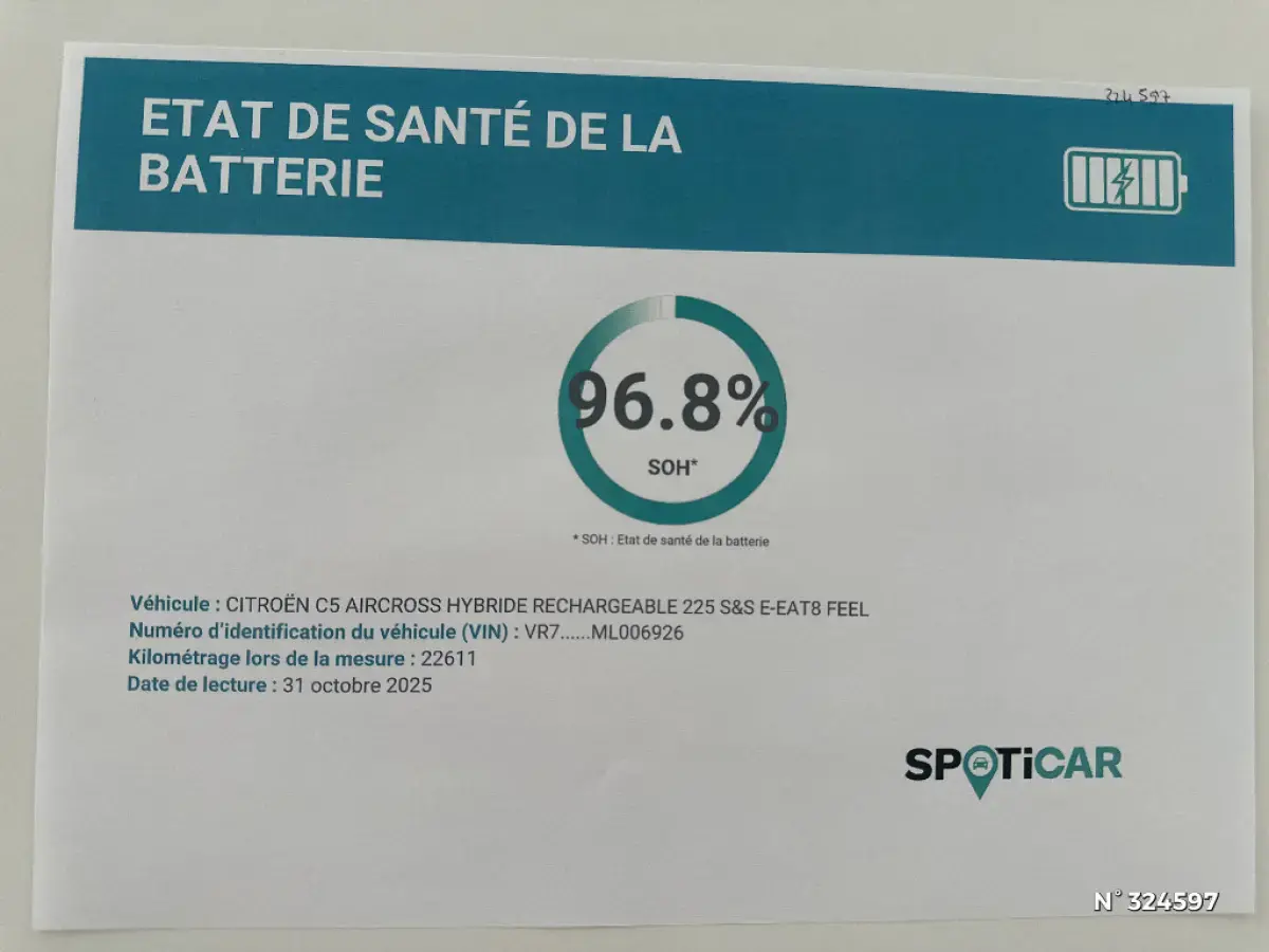 Capacité utile de la batterie 96.8 % 100 POINTS DE CONTRÔLE EFFECTUÉS, REVISION A JOUR. PRÊT À PARTIR OCCASION A SAISIR BATTERIE 12V NEUVECaroline P., chef des ventes