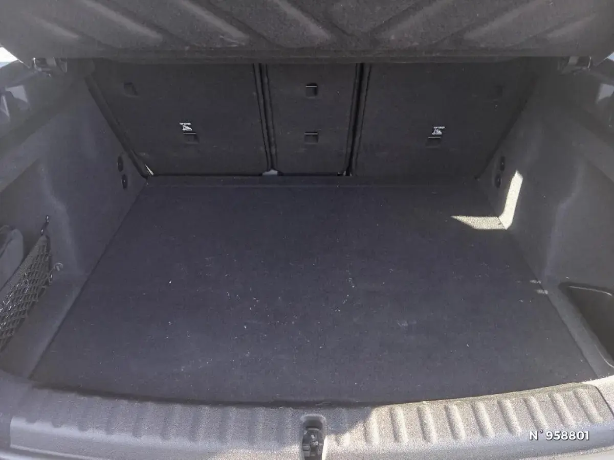 - Compartiment à bagages : 2 crochets de sac, filet sur panneau garuche, prise 12V rangement additionel (volume spécifique au modèle) sous plancher amovible