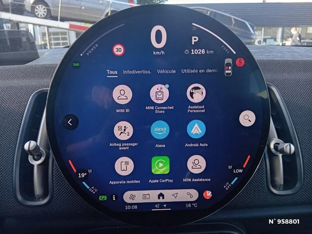 - Services connectés "MINI Connected Base" Navigation : information trafic en temps réel RTTI (informations sur l'itinéraire actif uniquement), carte en streaming (les mises à jour ne sont plus nécessaires), Connected Charging, Apple CarPlay, Android Auto, MINI Intelligent Personal Assistant, Amazon Alexa, MINI Modes (Green, Personal, Sport), Fonctions à distance via application MINI App, Remote Software Update