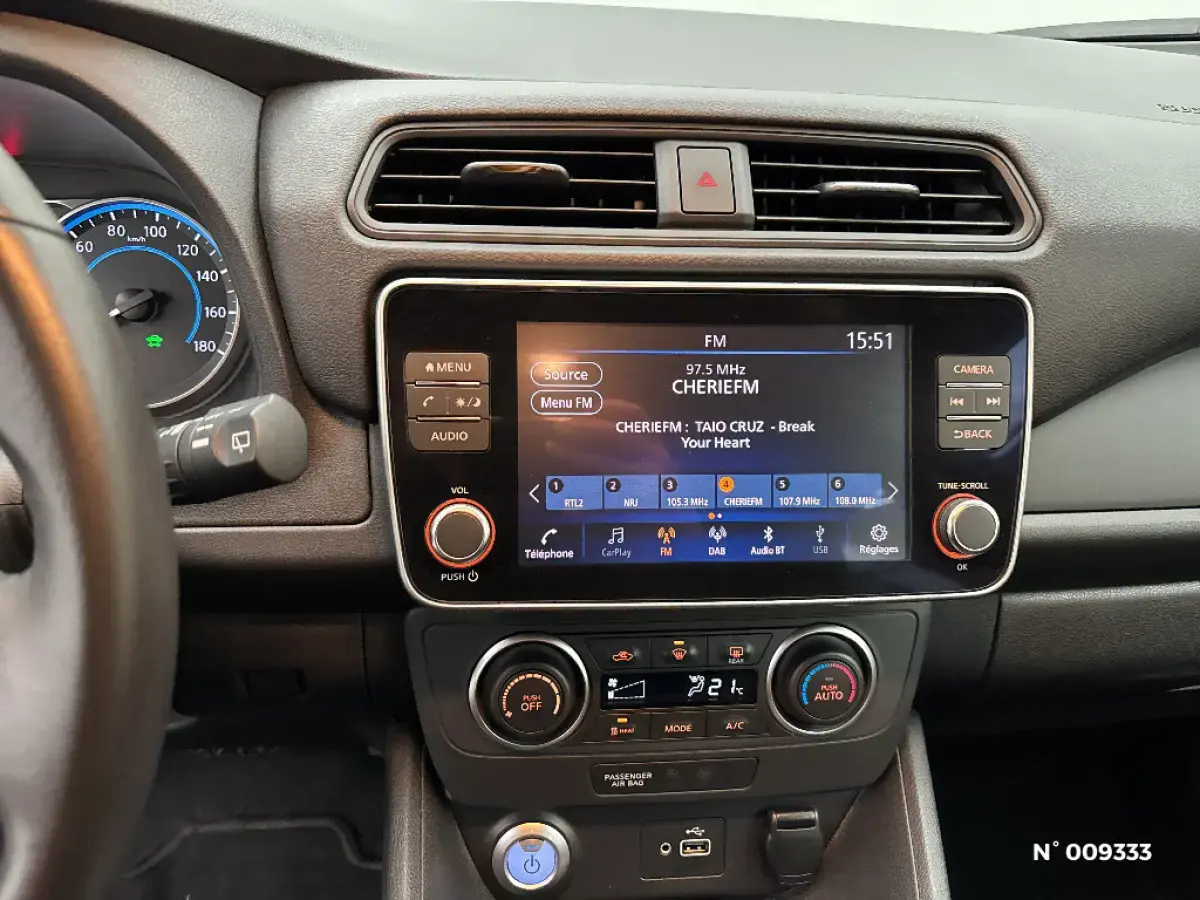 Julien D. chef des ventesLa Nissan Leaf 40 kWh Acenta offre une expérience 100 % électrique alliant performance, confort et zéro émission, idéale pour la conduite urbaine et périurbaine. Son autonomie fiable et son système de recharge rapide en font une solution pratique et économique au quotidien. Avec son design moderne et ses technologies avancées d’aide à la conduite, elle représente le parfait équilibre entre innovation et sérénité.