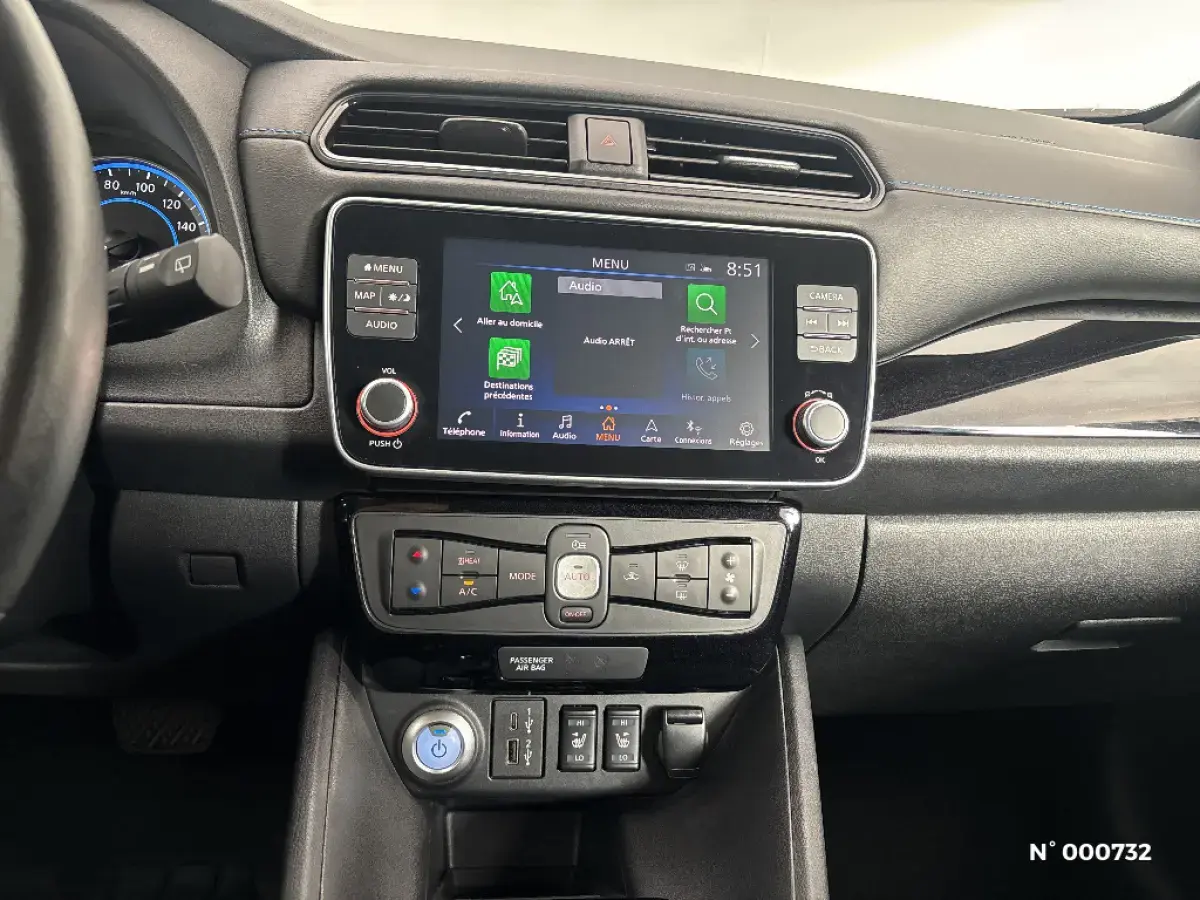 - Port CHAdeMO pour chargeur rapide 50 kW (recharge de 20% à 80% en 60 min sur 40 kWh ou 90 min sur 62 kWh)