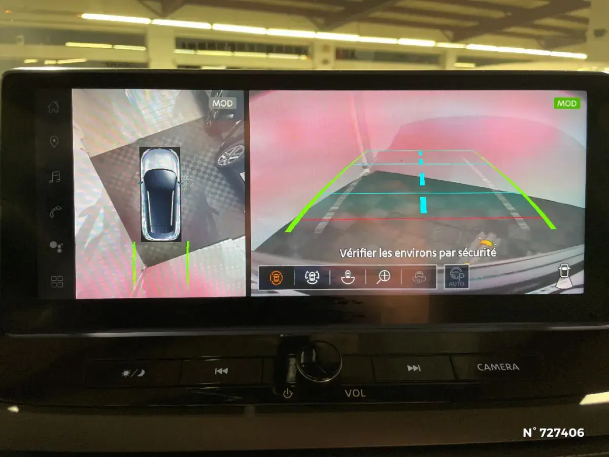 - Nissan AVM 3D - Vision Intelligente à 360° : système d'aide au stationnement qui facilite les manoeuvres de stationnement en vous offrant une vision à 360° : Caméra AR avec repères de gabarit, Caméra AV, Caméras latérales situées dans les rétroviseurs extérieurs, Radars 360°, Fonction ''capot transparent'', Mémorisation stationnement régulier et intersections