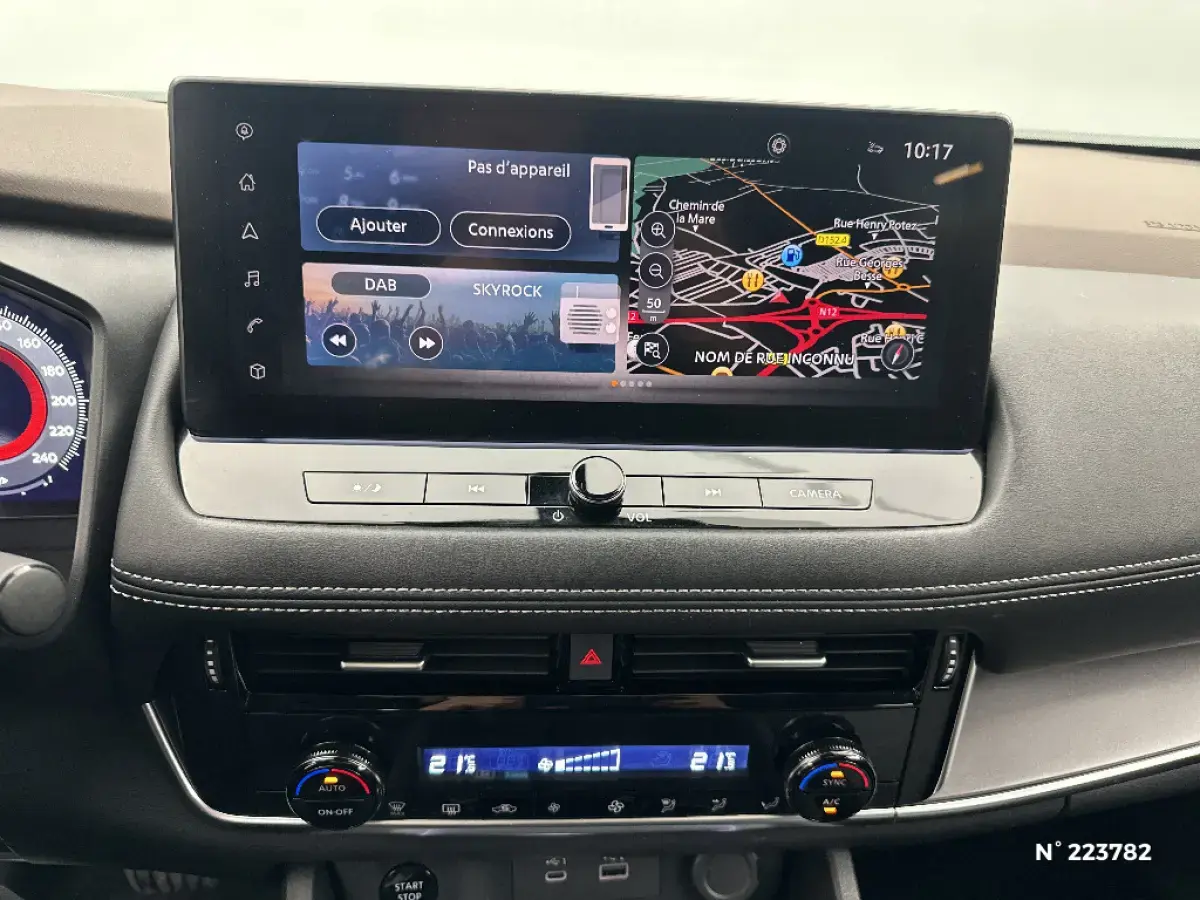 - Système de navigation NissanConnect avec écran tactile 12,3" : Live Traffic et cartes 3D, Navigation porte-à -porte, Recherche par Points d'Intérêt, Google Street View, Vue Satellite et Météo, Mise à jour des cartes et logiciels, Prix des carburants, Commandes vocales avancées avec Amazon Alexa®