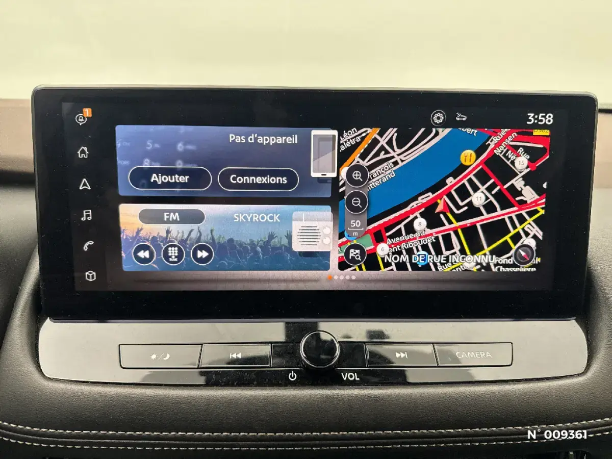 - Système de navigation NissanConnect avec écran tactile 12,3" : Live Traffic et cartes 3D, Navigation porte-à -porte, Recherche par Points d'Intérêt, Google Street View, Vue Satellite et Météo, Mise à jour des cartes et logiciels, Prix des carburants, Commandes vocales avancées avec Amazon Alexa®