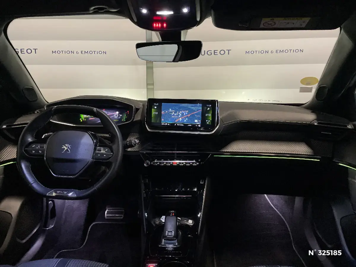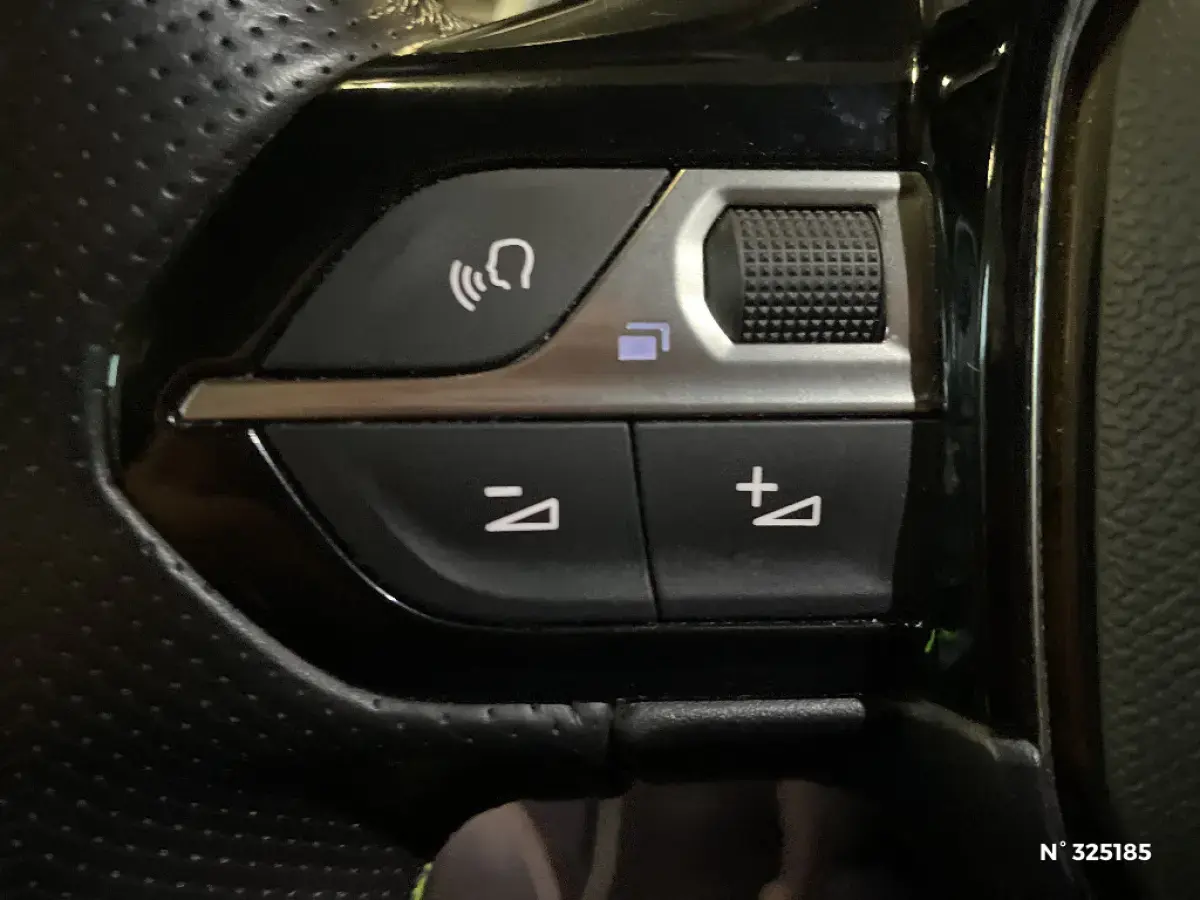 • Volant compact cuir fleur avec laçage vert, Lion chromé et badge GT Line et commandes multimédia sur volant