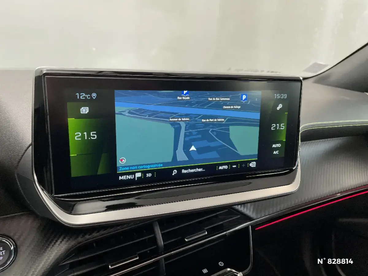 • Volant compact cuir fleur avec laçage vert, Lion chromé et badge GT Line et commandes multimédia sur volant