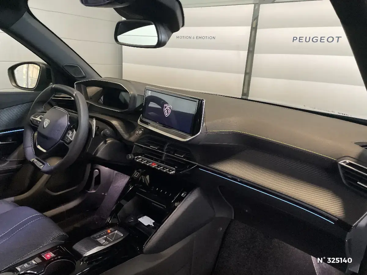 • Eléments de style éxterieur : Katana noir mat avec insert noir brillant et monogramme GT sur motorisations thermiques, Protections latérales de portes Noir grainées avec inserts Gris Météor, Becquet AR Noir Perla Nera, Seuils de porte aluminium avec lettrage PEUGEOT Noir
