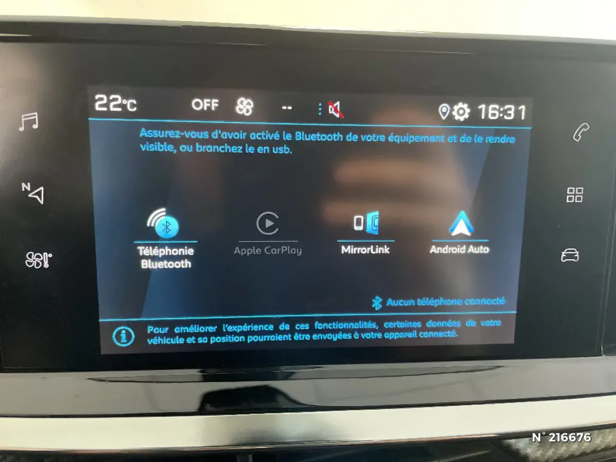 • Radio avec écran tactile capacitif 7" couleur, 1 prise USB (DATA type A) sur console AV