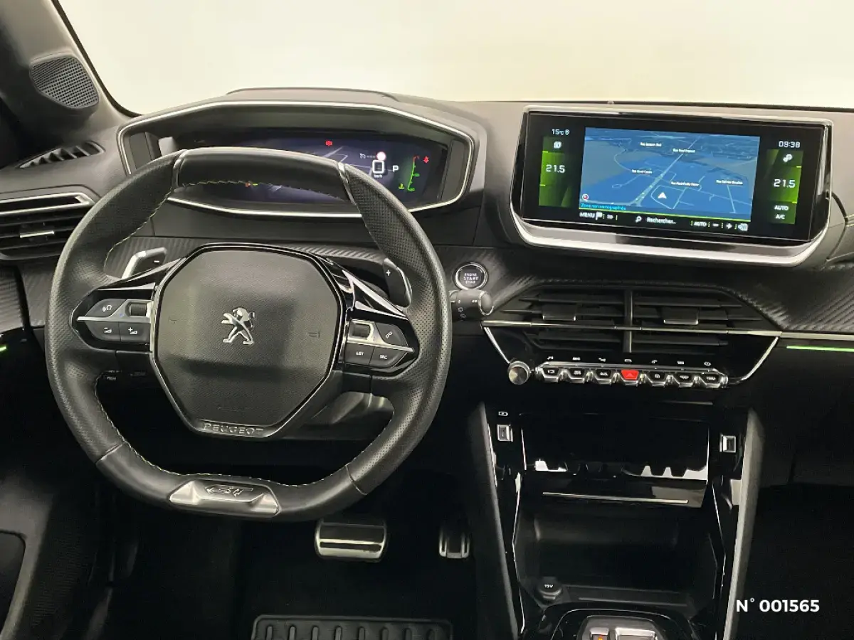 • Volant compact cuir fleur avec laçage vert, Lion chromé et badge GT et commandes multimédia sur volant