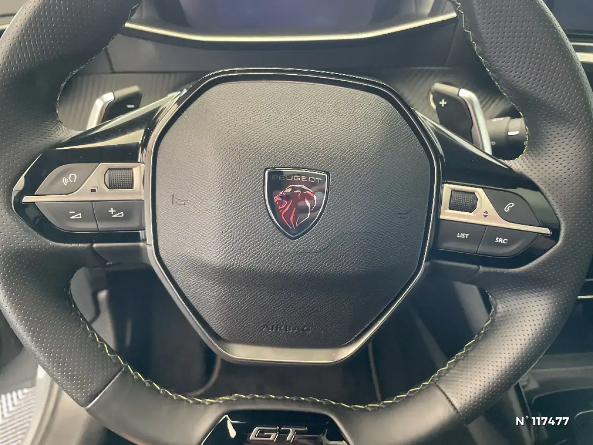 • Volant compact cuir fleur avec commandes multimédia intégrées et badge GT