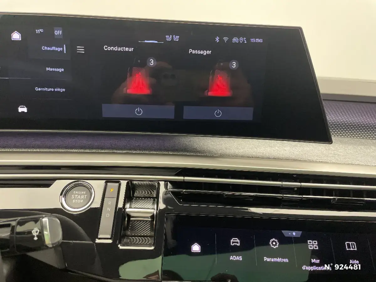 - Intérieur Alcantara Executive Sellerie Alcantara REFLECTION embossé, accompagnement TEP Isabella, écharpe tissu RIMINI chiné, surpiqûres Iced Clay Sièges conducteur et passager à réglages électriques certifiés AGR, réglage longueur d'assise manuel, maintien latéral adaptatif, réglage lombaire pneumatique, mémorisation des réglages pour le conducteur Sièges conducteur et passager chauffants et massants Sièges latéraux AR chauffants Appuis-tête AV avec réglages en hauteur intégrés