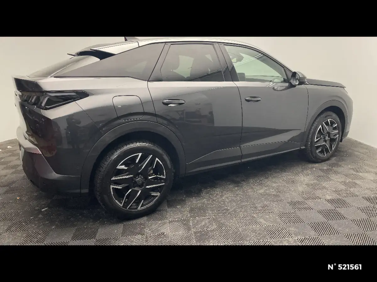 - Eléments de style éxterieur Bandeau entre les projecteurs Noir laqué avec logo '3008'. Calandre couleur caisse, écopes latérales Noir laqué, décor inférieur Gris Meteor, jupe inférieure Noir grainé. Vitres AR, vitres de custode et lunette AR surteintées. Lécheurs de vitres masqués. Enjoliveurs de passages de roues et protections inférieures de portes Noir grainé. Bandeau entre les feux AR Noir laqué avec lettrage 'PEUGEOT'. Pare chocs AR avec décor Gris Meteor et jupe inférieure Noir grainé, Monogrammes AV et AR