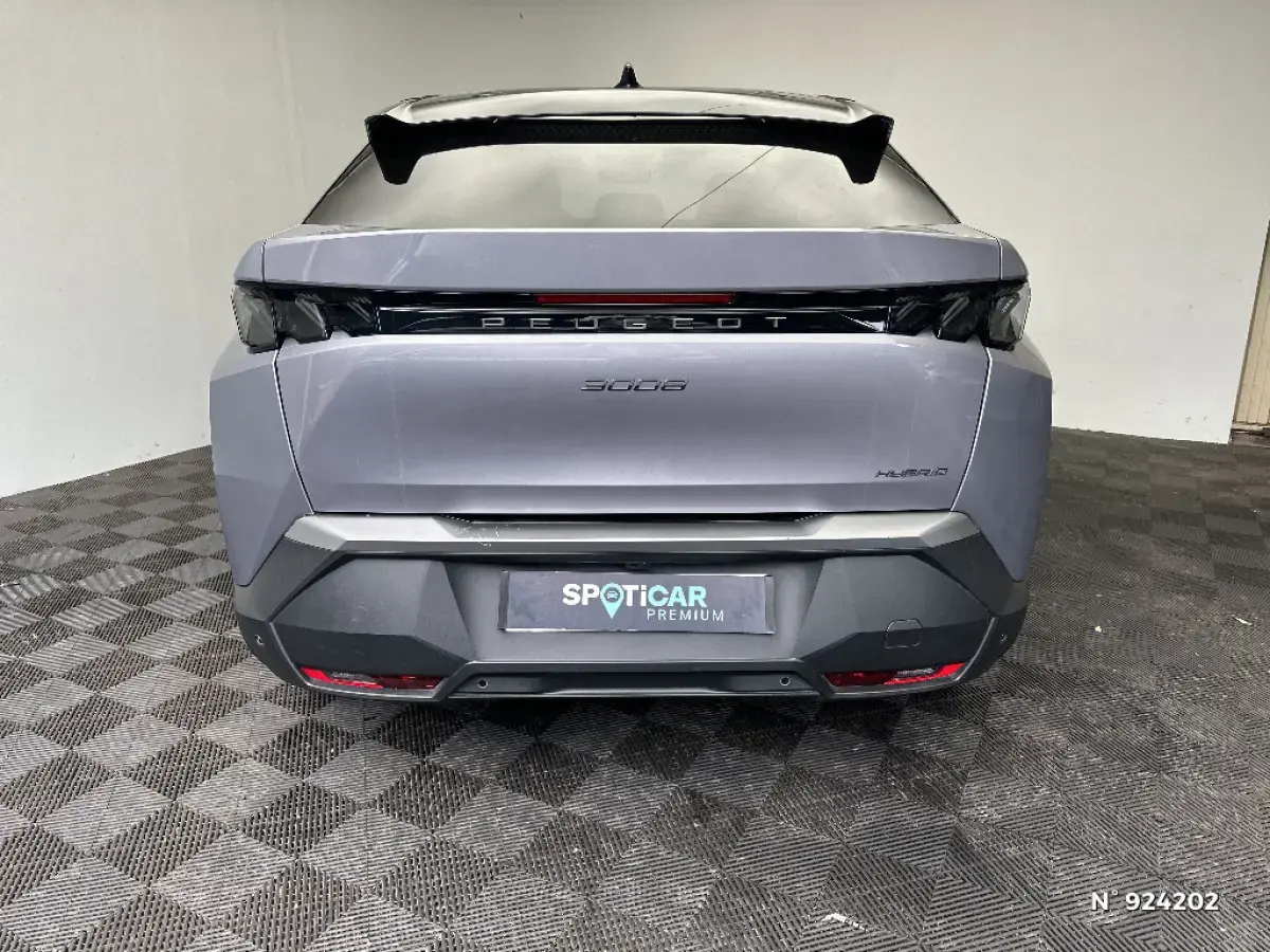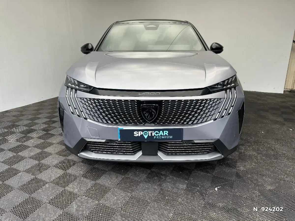 - Eléments de style éxterieur Bandeau entre les projecteurs Noir laqué avec logo '3008'. Calandre couleur caisse, écopes latérales Noir laqué, décor inférieur Gris Meteor, jupe inférieure Noir grainé. Vitres AR, vitres de custode et lunette AR surteintées. Lécheurs de vitres masqués. Enjoliveurs de passages de roues et protections inférieures de portes Noir grainé. Bandeau entre les feux AR Noir laqué avec lettrage 'PEUGEOT'. Pare chocs AR avec décor Gris Meteor et jupe inférieure Noir grainé, Monogrammes AV et AR