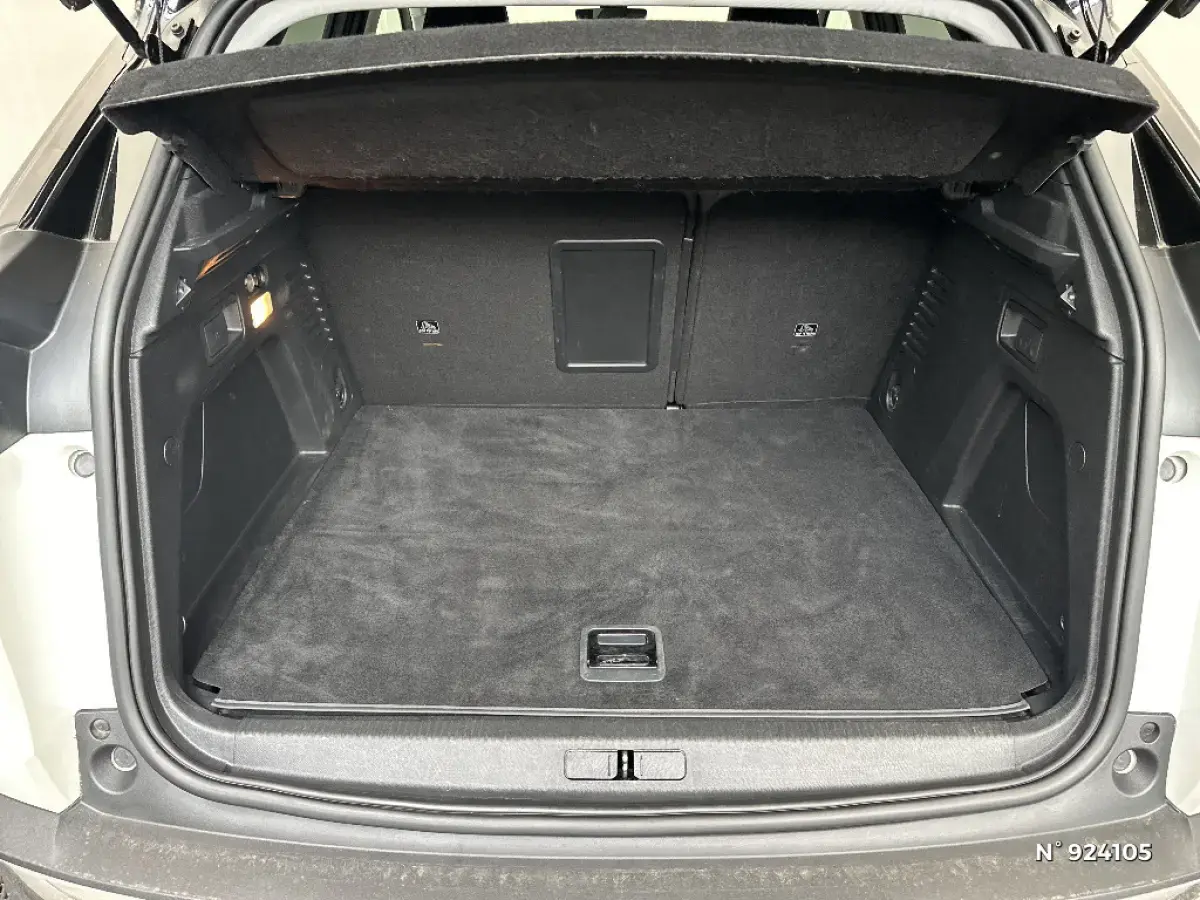- Plancher de coffre fixe avec articulation pour accès au coffre de rangement du câble de recharge