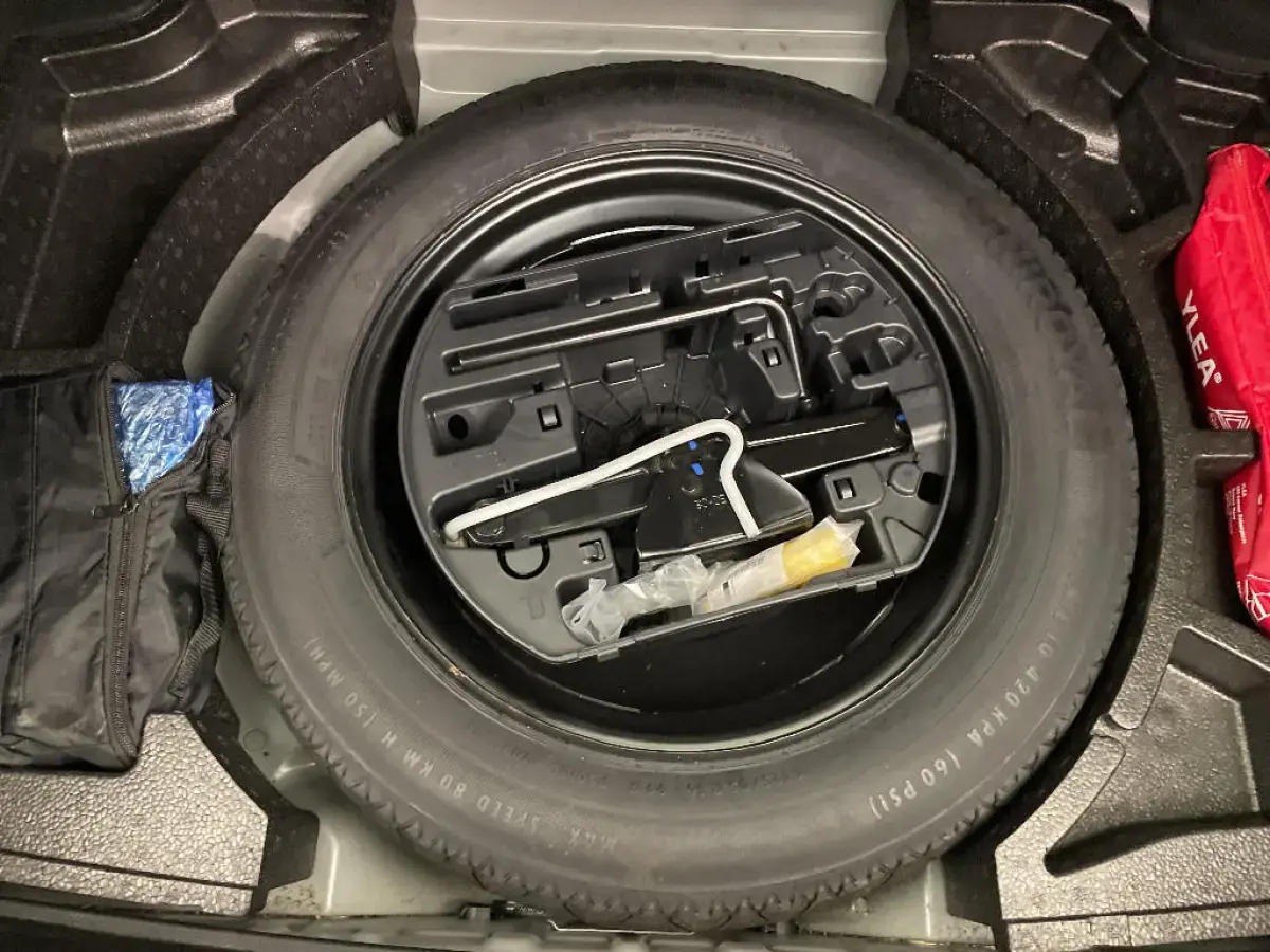 • Kit de dépannage de pneumatique : compresseur 12 volts, flacon de produit de colmatage, anneau de remorquage, deux cales de roue, manivelle de frein de stationnement électrique