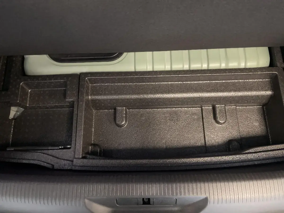 - Kit de dépannage de pneumatique : compresseur 12 volts, flacon de produit de colmatage, anneau de remorquage, deux cales de roue, manivelle de frein de stationnement électrique