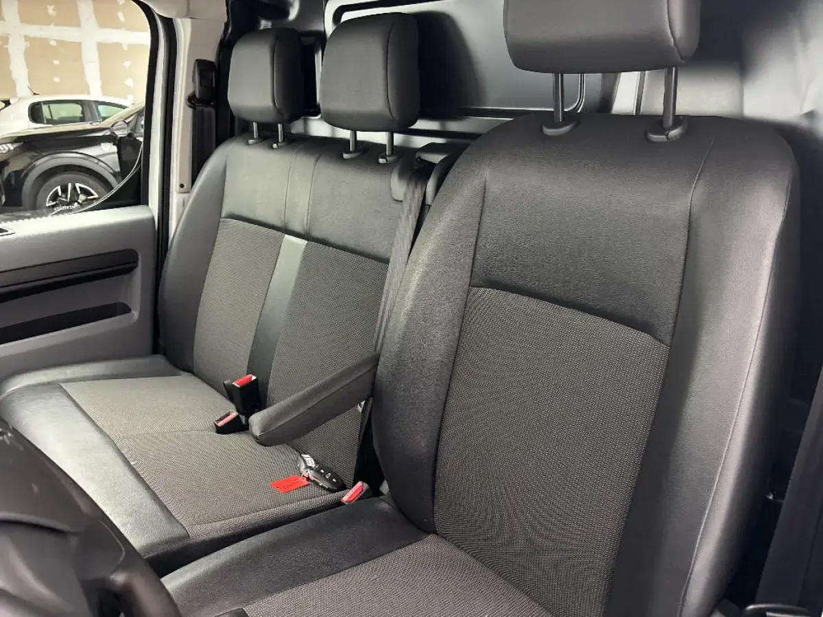 - Sièges passagers : Banquette 2 places avec rangement sous assise, avec garnissage tissu