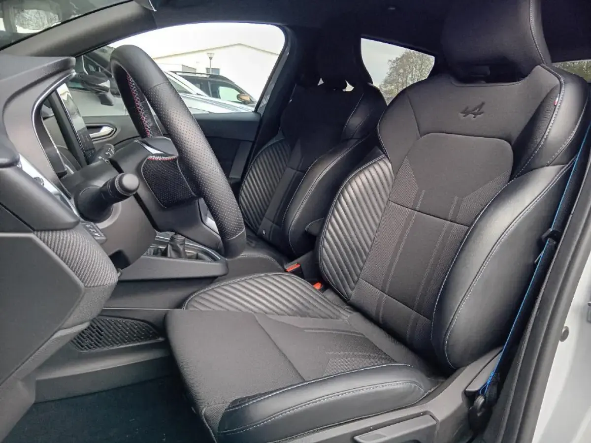 Quote La Clio V TCe 90 en finition Esprit Alpine se distingue par son allure sportive inspirée de la compétition. Elle affiche des jantes spécifiques et un badge distinctif sur les ailes. À l'intérieur, les sièges enveloppants et les matériaux haut de gamme soulignent une ambiance dynamique. Son moteur polyvalent offre un agrément de conduite idéal pour les trajets quotidiens.