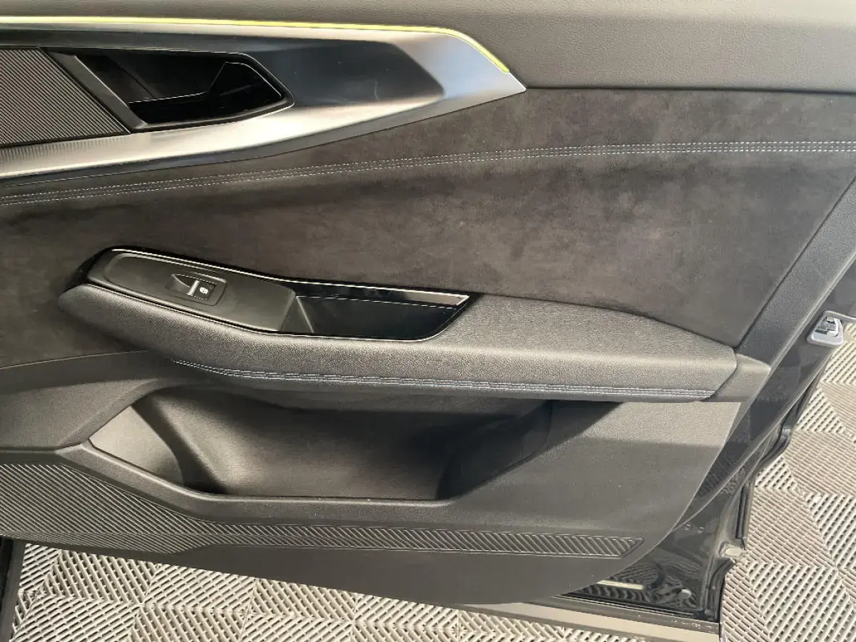 - Sellerie mixte tissu carbone / alcantara avec surpiqures bleu