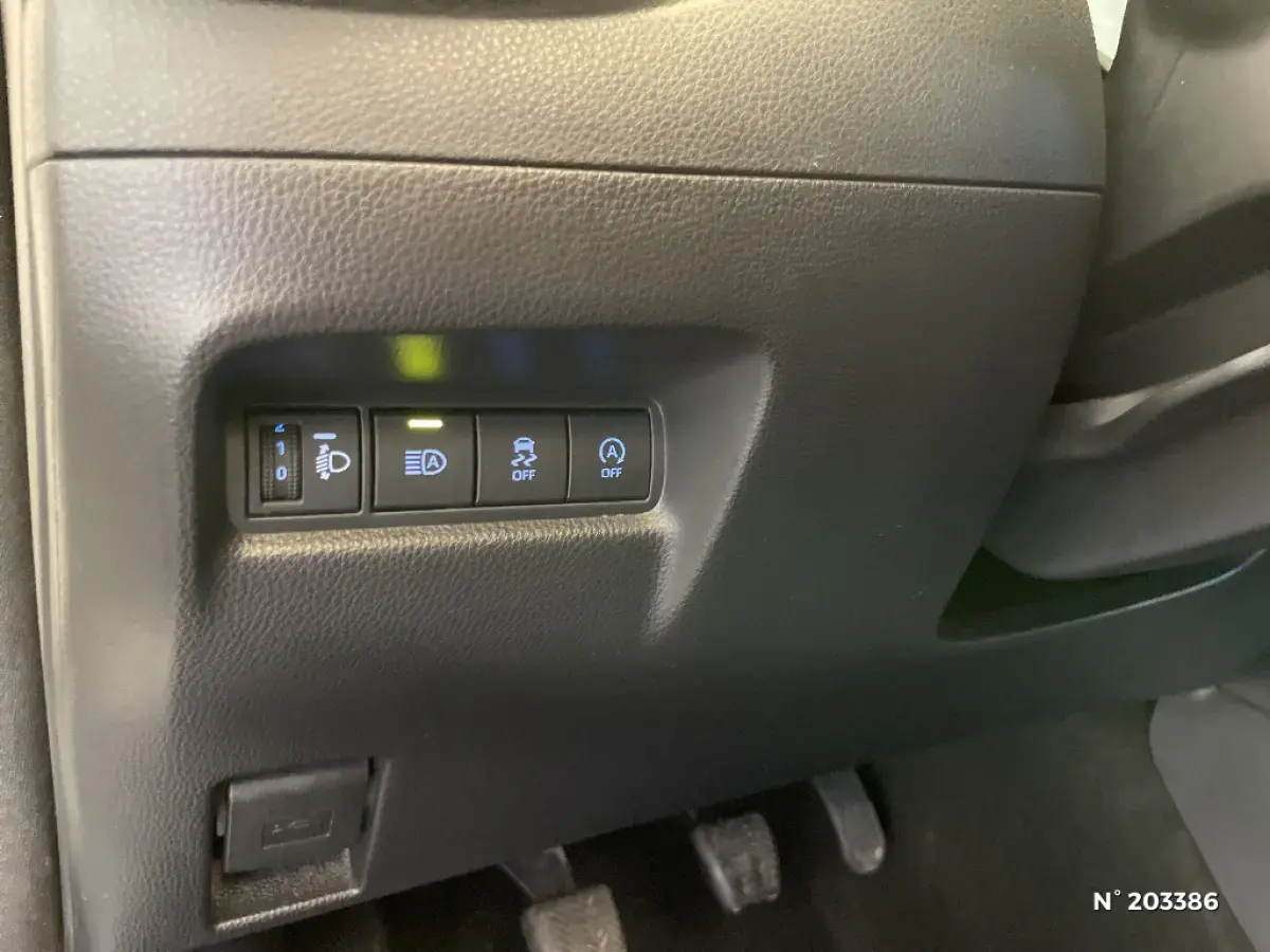 • Toyota Safety Sense : Système de sécurité précollision avec détection des véhicules, piétons et cyclistes, actif également dans les intersections, Alerte de franchissement de ligne avec aide au maintien dans la file, assistant de trajectoire et détecteur de fatigue, Régulateur de vitesse adaptatif intelligent allant jusqu'à l'arrêt, Lecture des panneaux de signalisation avec limiteur de vitesse et Gestion automatique des feux de route
