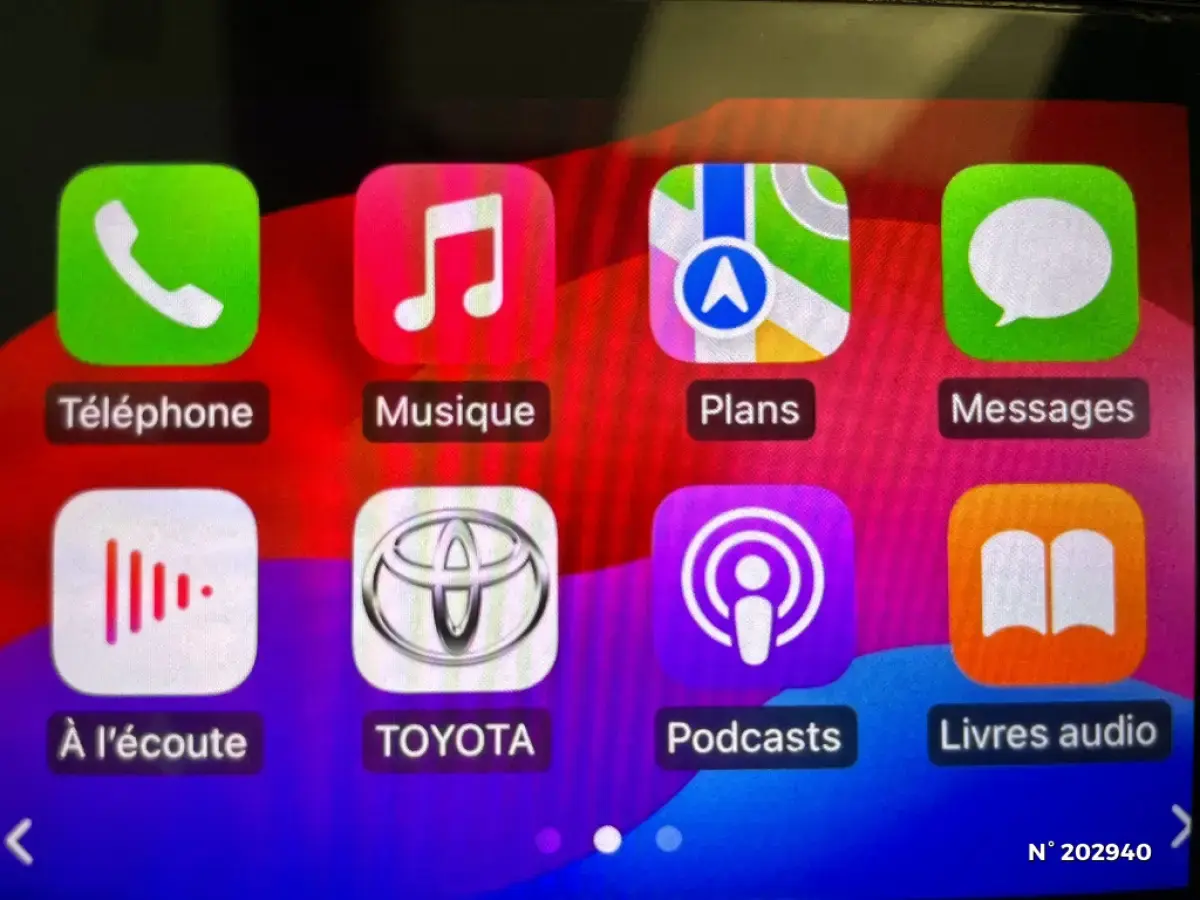 - Toyota Smart Connect avec écran couleur tactile 8" haute définition, connectivité smartphone sans fil compatible AppleCar Play et Android Auto, Navigation connectée avec infotrafic en temps réel et Smart Parking (aide à la recherche de stationnement) Reconnaissance vocale avancée "Hey Toyota", 4 ans de mises à jour cartographiques et services connectés inclus