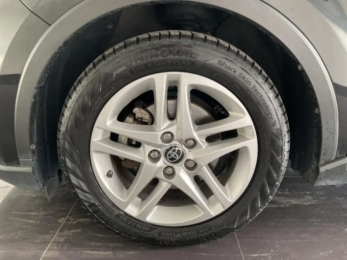• Toyota Safety Sense Système de sécurité précollision avec détection des piétons, Alerte de franchissement de ligne et détecteur de fatigue, gestion automatique des feux de route, lecture des panneaux de signalisation, régulateur de vitesse adaptatif.