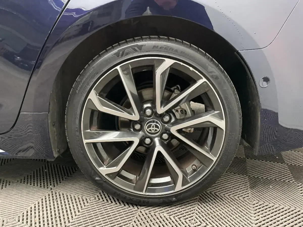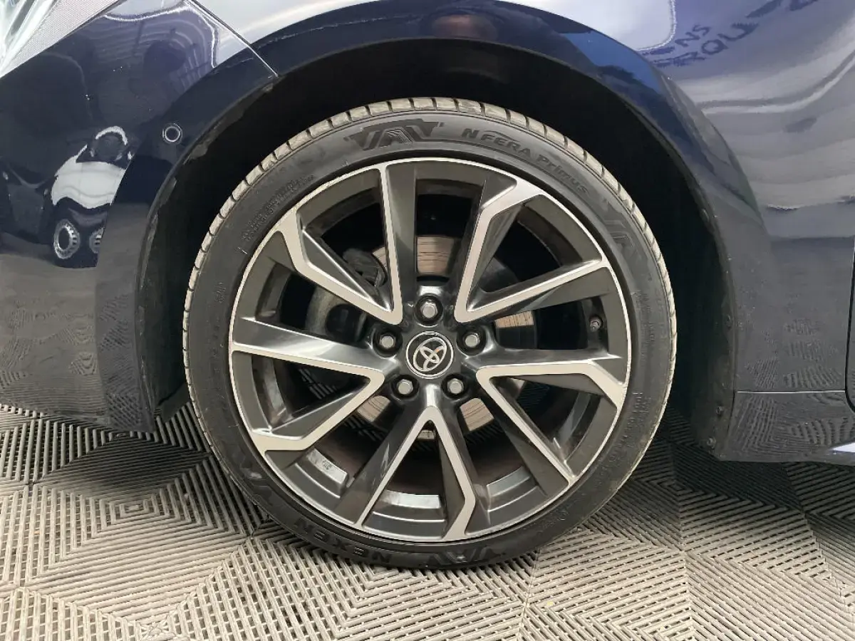 • Toyota Safety Sense Système de sécurité précollision avec détection des piétons, Alerte de franchissement de ligne et détecteur de fatigue, gestion automatique des feux de route, lecture des panneaux de signalisation, régulateur de vitesse adaptatif.